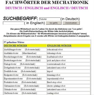 Technisches Deutsch-Englisch Wörterbuch Mechatroniker
